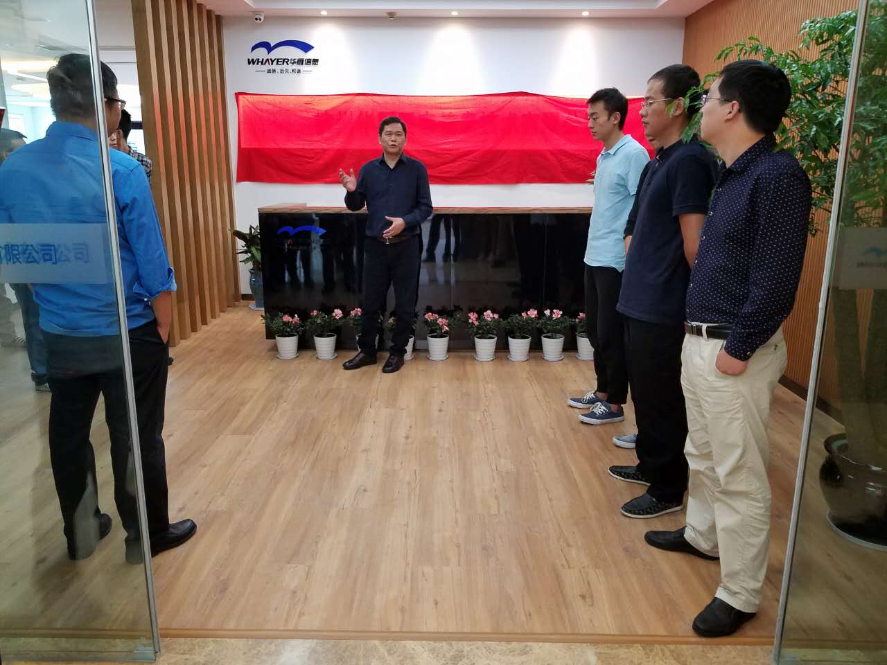 揭牌儀式結(jié)束后,在董事長(zhǎng)沈建平先生的陪同下,上城區(qū)管委會(huì)副主任陳剛先生、管委會(huì)科長(zhǎng)朱勤華女士一行參觀了公司。