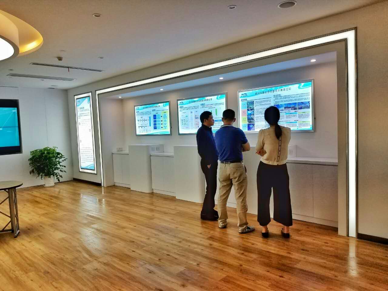 左起:董事長(zhǎng)沈建平先生、管委會(huì)副主任陳剛先生、管委會(huì)科長(zhǎng)朱勤華女士參觀展廳